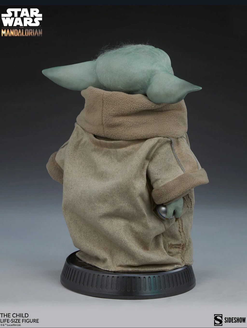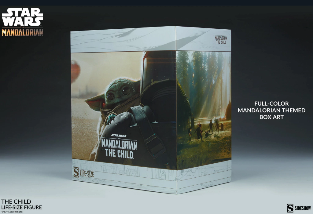 La figura mide 41.9 cm de altura y se presenta en una base simple que permite que el encantador The Child sea el centro de atención. Su apariencia única en pantalla ha sido cuidadosamente recreada en esta estatua de medios mixtos, que incluye una chaqueta de tela de color beige, mientras mira con sus grandes ojos cautivadores, sosteniendo la perilla plateada de la Razor Crest™ en su mano derecha.