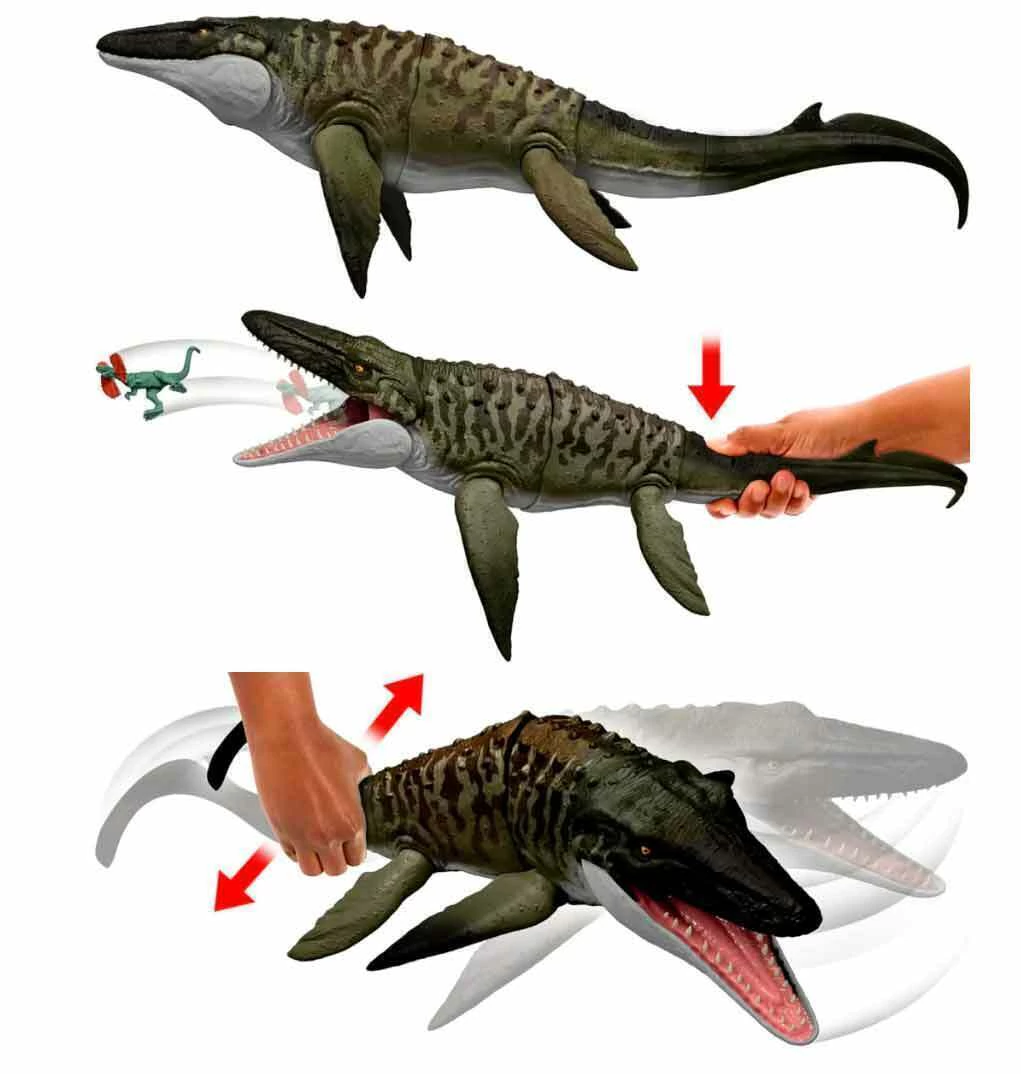 Descubrí el poder del océano jurásico con el Mosasaurus Jurassic World Rebirth original de Mattel con sonido. Este imponente dinosaurio marino es una pieza imprescindible para los fanáticos de Jurassic World y los amantes de los dinosaurios, que buscan una experiencia auténtica y llena de acción.
